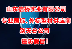 • 山東信橋?qū)崢I(yè)有限公司成立于1994年8月8日,是解決業(yè)內(nèi)高端國(guó)標(biāo)、外標(biāo)型材需求的現(xiàn)貨服務(wù)商,為型材的升級(jí)換代提供可能。