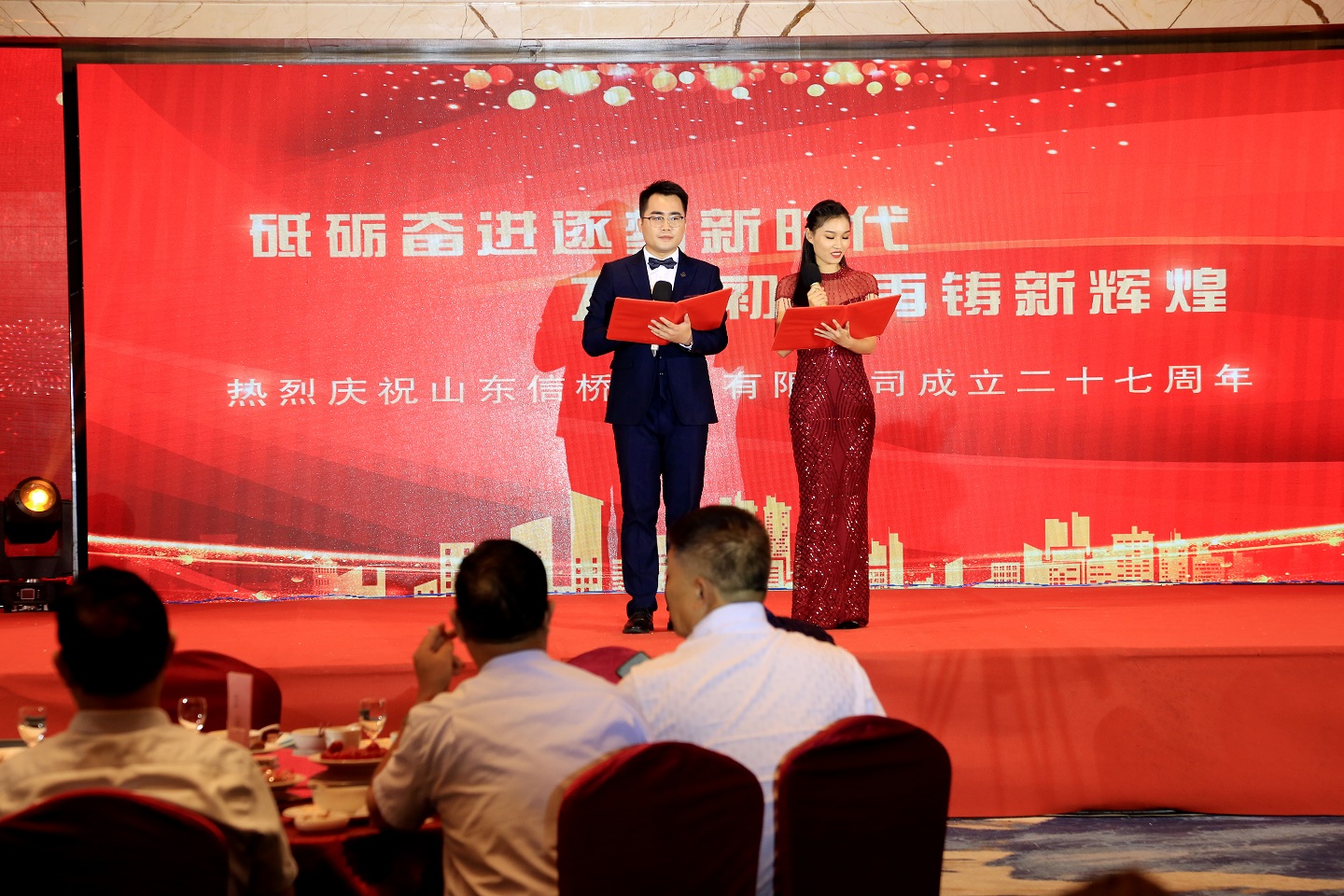 歲月如歌,風霜如畫,二十七年彈指一揮間,山東信橋實業(yè)有限公司(以下簡稱山東信橋)迎來了二十七周年的生日。二十七年來,信橋人在激烈的市場競爭中奮力拼搏、砥礪前行,接受了市場風風雨雨的洗禮,取得了累累碩果。為了慶祝這一特殊的日子,2021年8月8日,以“拼搏進取,開創(chuàng)新時代”為主題的山東信橋二十七周年慶典活動在寶盛大酒店舉行。